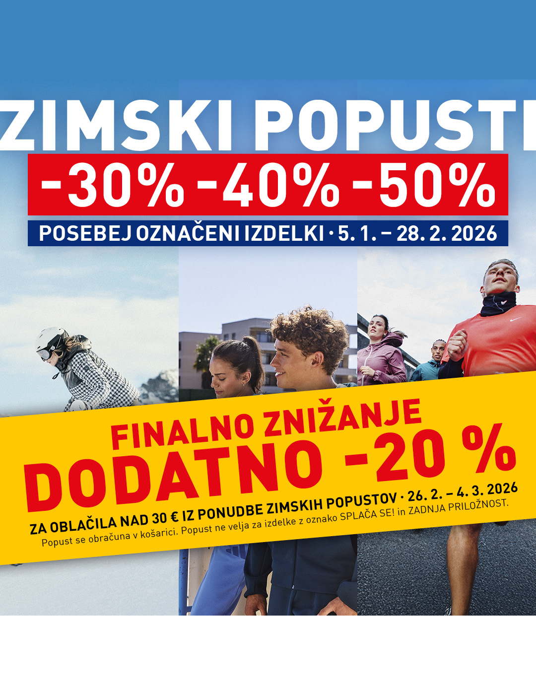 Unovčite DODATNIH 20 % POPUSTA za oblačila nad 30 eur iz ponudbe Zimski popusti. Preverite ponudbo > Dodatni popust velja od 26. 2. do 4. 3. 2026 v…